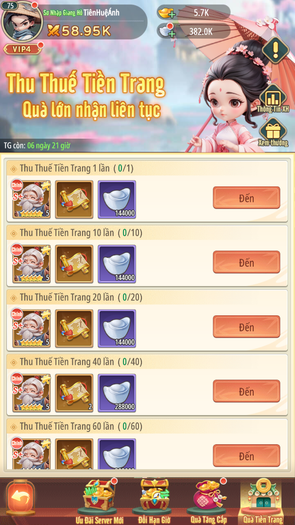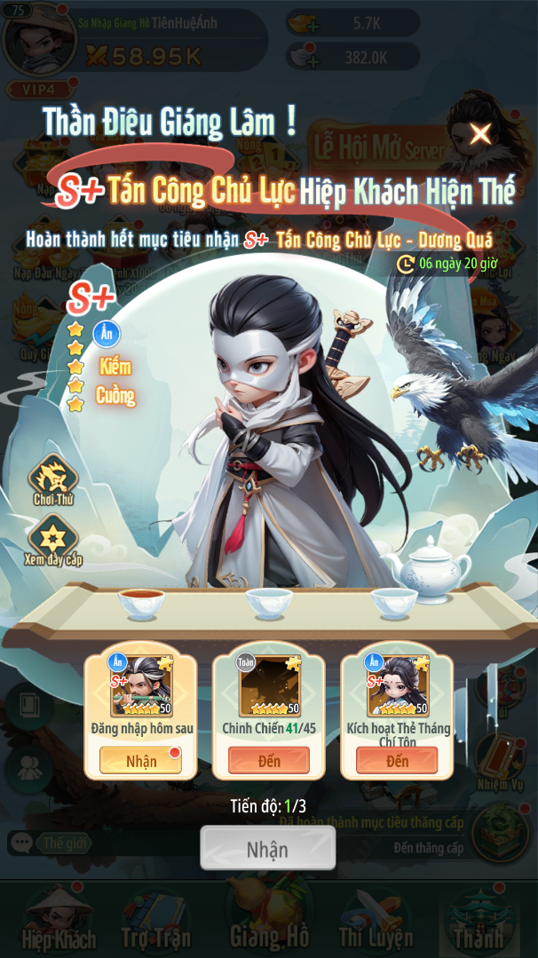 - Nhiệm Vụ 1: Đăng Nhập Hôm Sau nhận Hiệp Khách Hoàng Dược Sư S+.