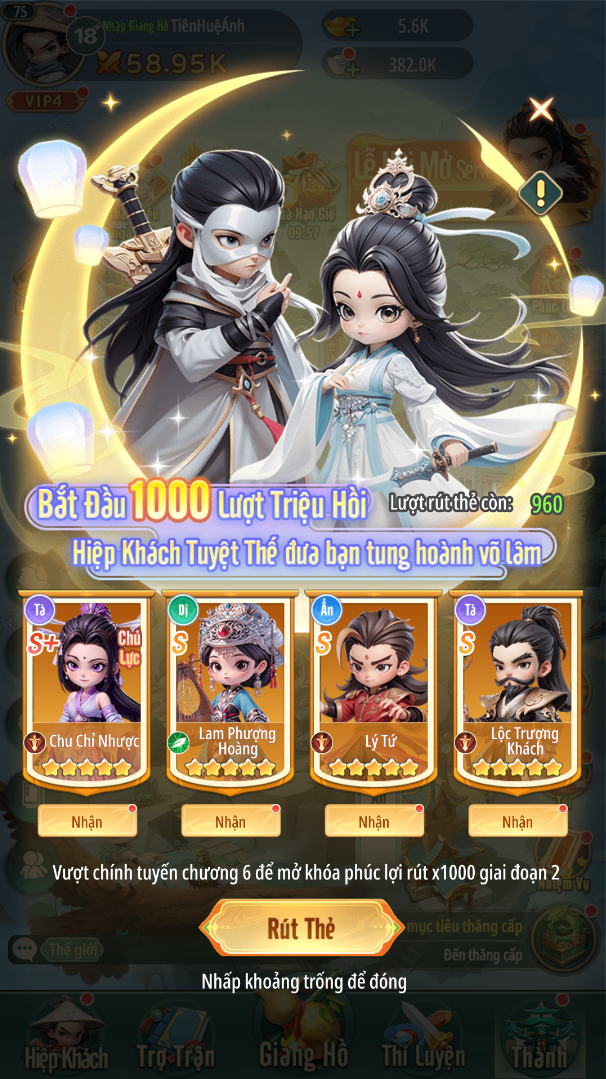 - Nhiệm Vụ 3: Kích Hoạt Thẻ Tháng Chí Tốn nhận Hiệp Khách Tiểu Long Nữ S+.