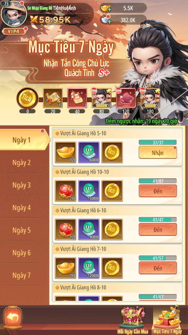 - Đại Hiệp làm nhiệm vụ để nhận thưởng và Điểm Mục Tiêu 7 Ngày.
