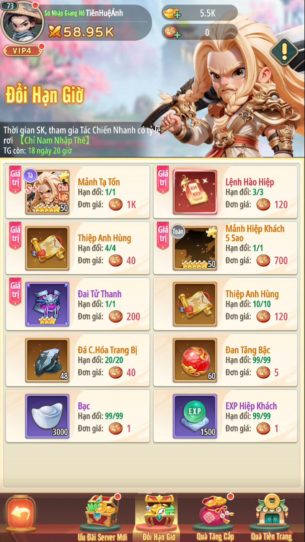 - Đổi Bạc đạt mốc nhận Chu Bá Thông S+, Thiệp Anh Hùng và Bạc.